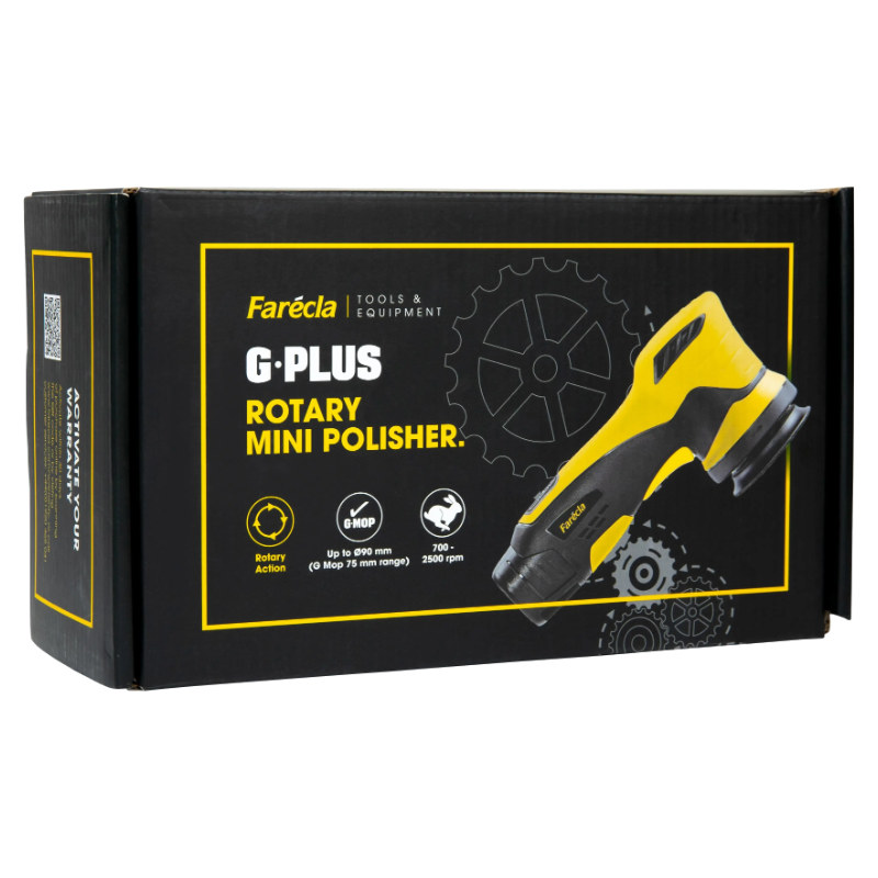 Die G Plus Mini Rotationspoliermaschine wurde speziell nach den Anforderungen von Farécla entwickelt als ultimatives Präzisionswerkzeug für feine Detailarbeiten und Korrekturen auf kleinen Flächen entwickelt. Dieses kompakte Modell bietet außergewöhnliche Leistung, wenn es auf Platz und Genauigkeit ankommt. Ideal für den Einsatz im Automobil- und Industriebereich. Die Mini-Poliermaschine verfügt über einen 74 mm (3") großen Stützteller, der mit der G Mop 75 mm Applikatoren-Serie kompatibel ist. Sie ist eine vielseitige und leistungsstarke Ergänzung für jedes Polierer-Set.